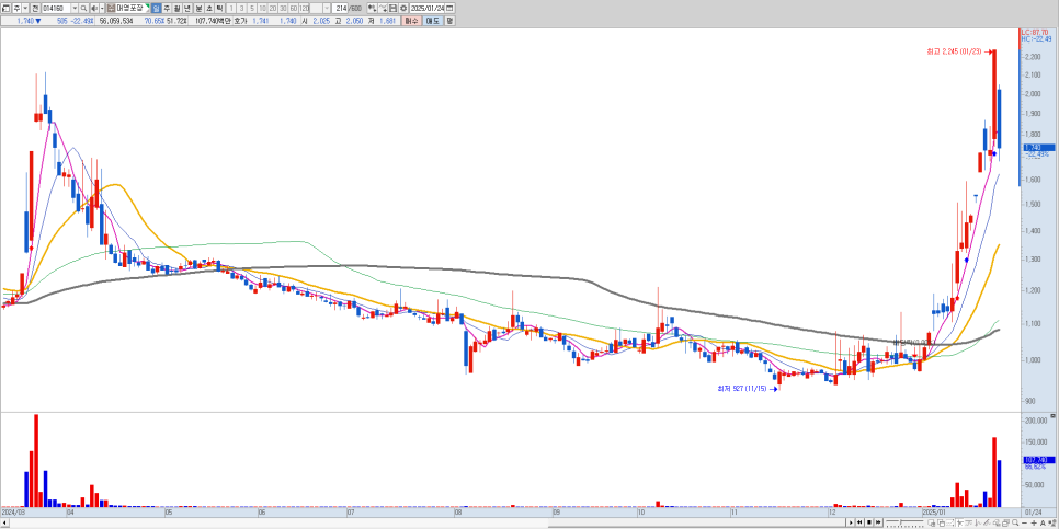 시가총액 525억 원의 평화홀딩스는 김문수 관련주 중 가장 강력한 상승세를 보였습니다. 45.4%의 적정한 유통비율과 함께, 2,500원대에서 4,500원까지 급상승하며 시장의 관심을 집중시켰습니다. 23년 5월 이후 최고가를 갱신했다는 점에서 의미가 있습니다.