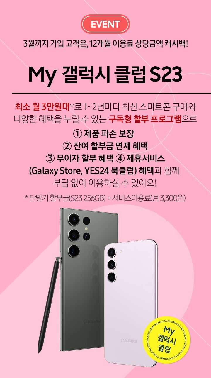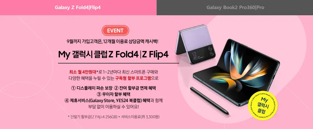 - 24개월 분할납부 중 12개월 사용 후 신형 갤럭시로 자유롭게 교체