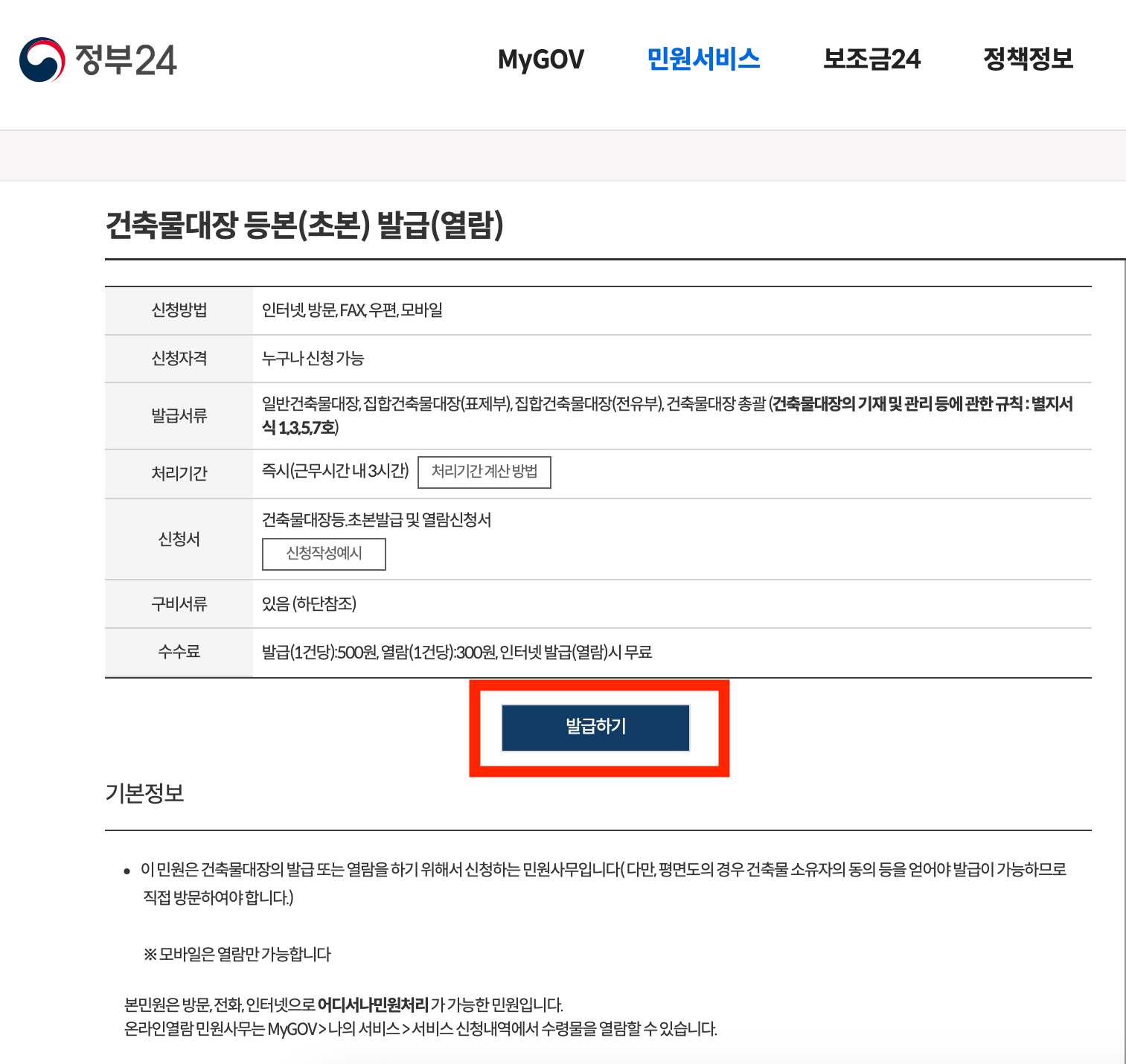 정부24에서 제공하는 건축물관리대장 발급 서비스는 24시간 이용 가능하며, 2025년 기준 수수료가 무료입니다. 공동인증서나 금융인증서를 사용하여 간편하게 발급받을 수 있습니다.